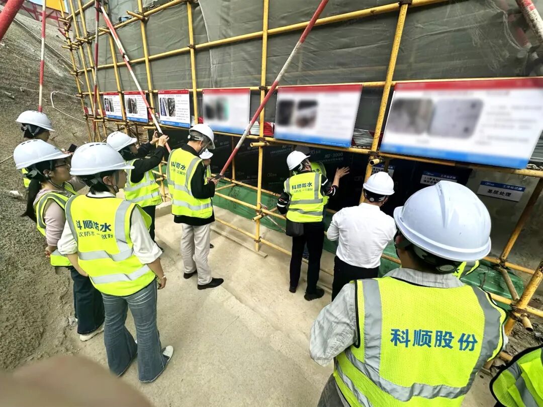调研组专程赶赴深圳、广州,实地考察采用科顺“KS-525抗滑移涂料复合自粘卷材系统”的地下侧墙防水项目。